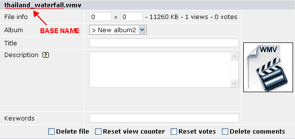 FTP upload both the video and (thumbnail or image) then batch-add. If you FTP upload the thumbnail, the thumbnail will be display in the batch add page instead of the default Coppermine thumbnail. If you upload an image it will look like the above screenshot. However, when the both files are added to the database, the thumbnail of the image will be used by the video.Note: If the first method is used and the image later deleted, the thumbnail will also be deleted and the default Coppermine thumbnails will be displayed, instead.